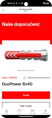 Představujeme vám revoluční funkce pro ještě snazší orientaci a pohodlnější nákup. Zcela nový online katalog produktů zpřístupňuje celý sortiment fischer na jednom místě. Díky integrovanému skeneru čárových kódů okamžitě získáte všechny důležité informace o výrobku a navíc, s přímým propojením na internetové obchody, můžete požadované produkty pohodlně objednat online. Už žádné zdlouhavé hledání v prodejně! S inovativním skenerem regálů snadno zjistíte, kde se konkrétní fischer výrobek nachází přímo v regálu.